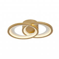 Com dimensão de 62x7cm, o Plafon LED Zahal Duo 54W destaca-se pela sua estrutura em Metal e Acrílico Dourado Fosco.