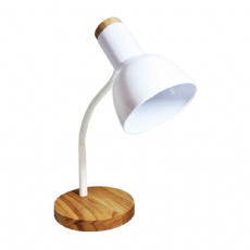Acabamento com detalhes de madeira e possui haste articulável para direcionar a luz onde desejar.
