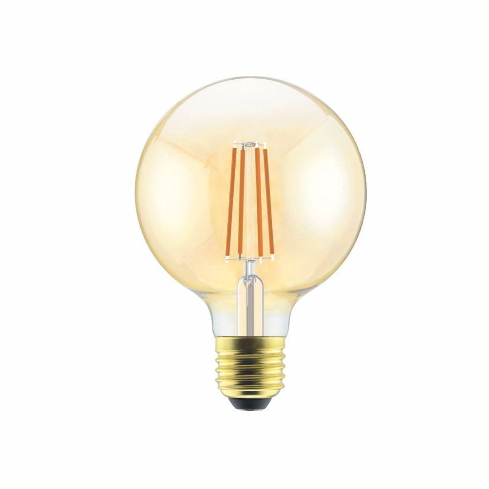 A Lâmpada G95 Dimerizável Filamento LED é perfeita para transformar o ambiente da maneira que desejar, seja uma iluminação mais leve e aconchegante, ou mais forte. O vidro Âmbar proporciona um estilo vintage retrô para o seu espaço.