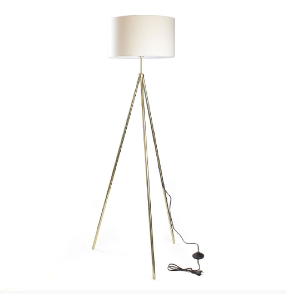 coluna, abajur de chao, dourado, três pernas, luminaria de chao